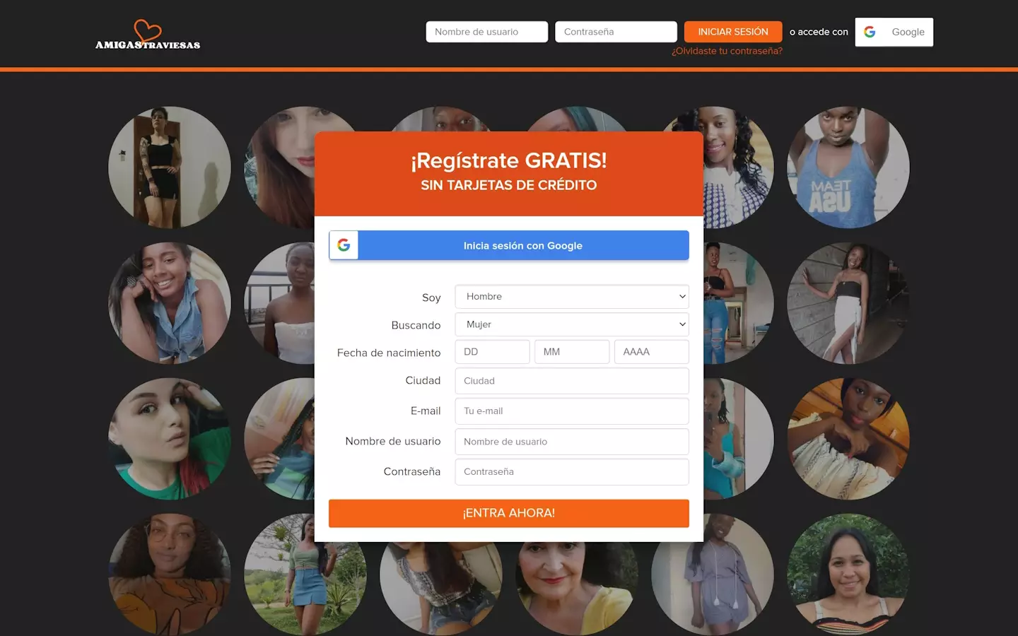 AmigasTraviesas.com es muy similar a otros portales gestionados por Axton International BV. En la portada aparecen muchas fotos de tamaño reducido, cada una en un marco circular. Se supone que pertenecen a usuarias de la web. También vemos el típico formulario de registro donde nos invitan a darnos de alta gratis. En la zona interior de la pantalla se informa sutilmente sobre el uso de perfiles falsos y de lo que cuestan los mensajes. Lo único que ofrecen es la oportunidad de conocer al “perfil de tus sueños”, lo cual no significa nada.