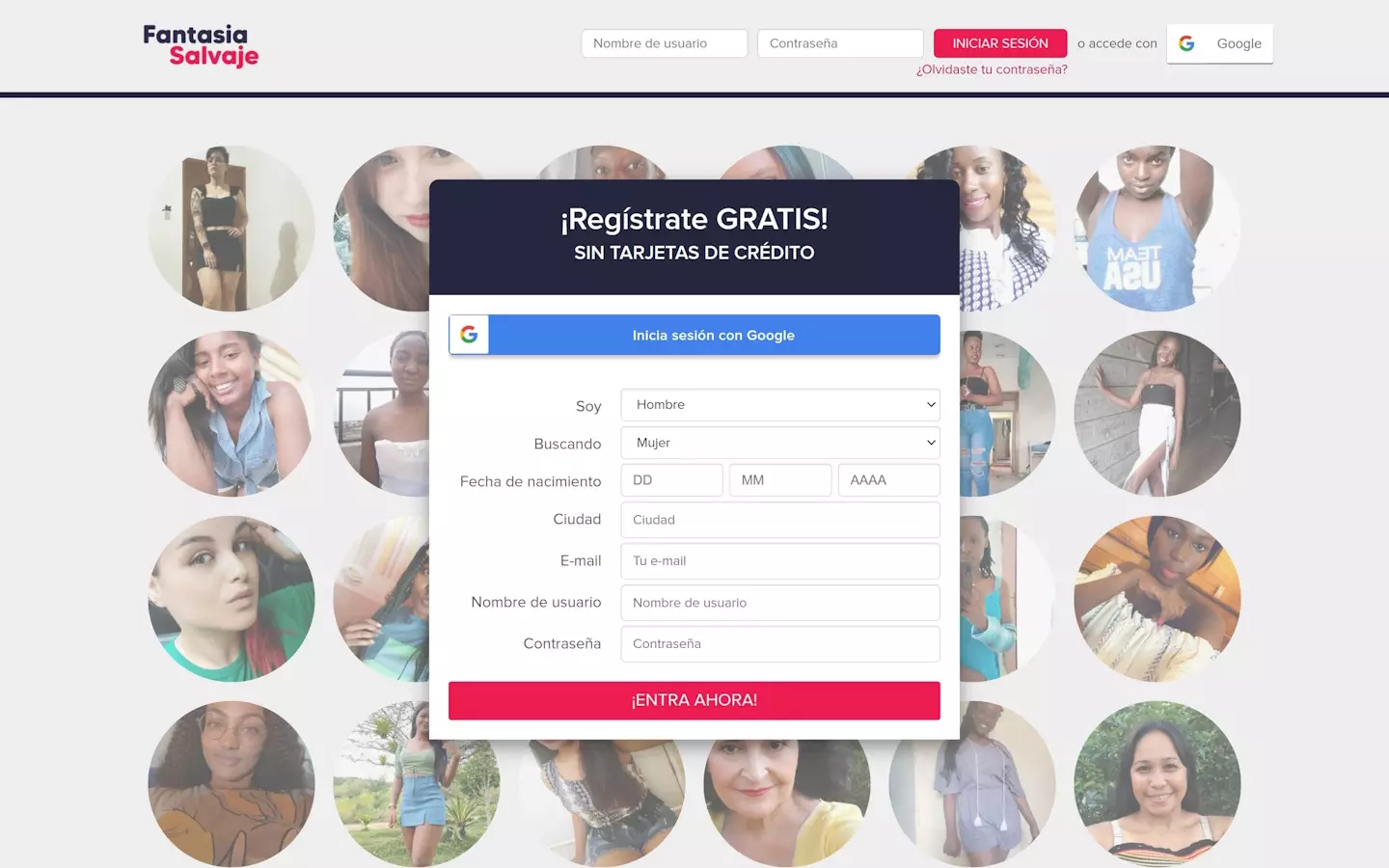 Para crear una cuenta en FantasíaSalvaje.com se hace clic en la opción “Suscríbete”. Una vez allí, se puede elegir darse de alta mediante una cuenta de Google o una dirección de correo electrónico. A continuación se elige nuestro sexo y el de las personas que nos atraen. Hay que aportar una fecha de nacimiento, localidad, y crear un nombre de usuario. También es necesario idear una contraseña, y finalmente hacer clic en “Entra ahora”. Al crear una cuenta, se aprueban implícitamente las condiciones de uso.